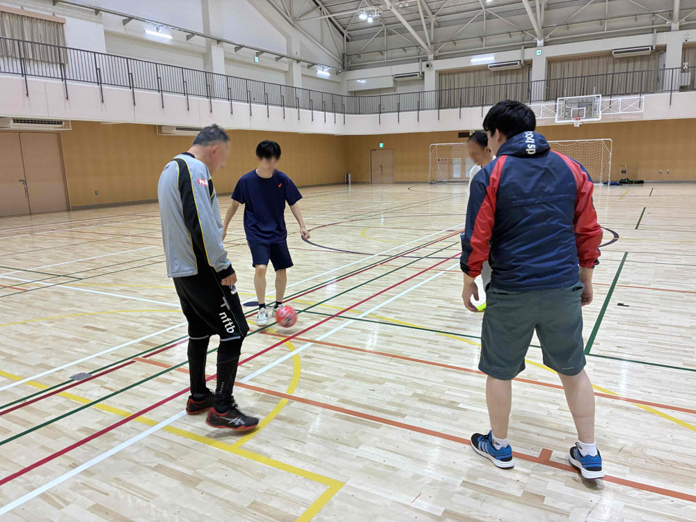 主な練習メニューとしては、準備運動、パス回し、4対1(4人で円を作り、その中に1名入り、ボールを取られることなくパス回しをする)、