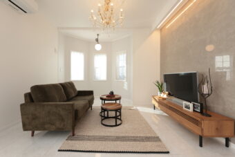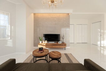 リビングも同様に白を基調とし、シンプルながらも素材の良さが際立つ設えに。