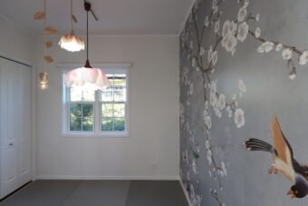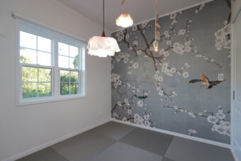 一面にあしらわれた梅柄のクロスは、和紙ならではの質感と花の表情が美しく、凛とした中にもやさしさを感じさせます。