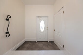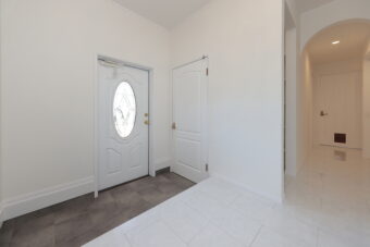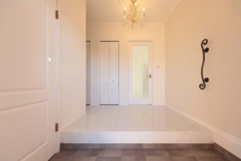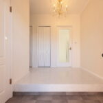 玄関の扉を開けると、足元にはやさしい質感のパピアフロア、そして白を基調とした明るく上品な空間が広がります。