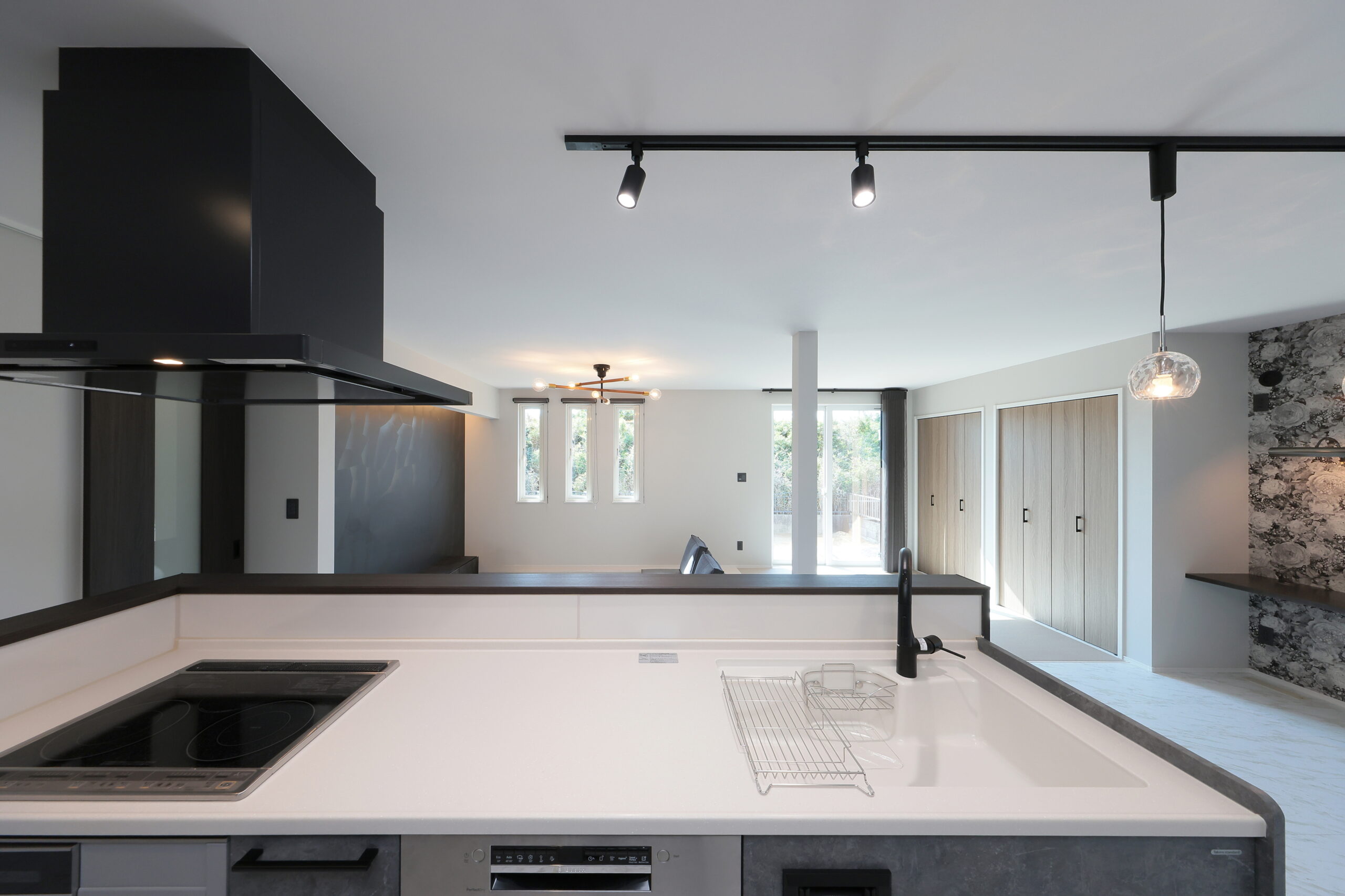 イシンホーム K様邸 イシンホーム施工例施工例 「照明とクロスで魅せる心地よい暮らし」 照明やクロスの使い方がとても上手な施工事例です。ペンダントライトや間接照明が空間に立体感を与え、モノトーンの花柄アクセントクロスが上質な雰囲気を演出。リビングには家族がくつろげる畳コーナーを設け、隣接するランドリー室の横には使い勝手の良いファミリークローゼットを配置。さらに小屋裏収納もあり、見た目と機能性を両立した快適な住まいです。 ご予約・お問い合わせフォーム その他のイベント・ブログ イシンホ-ム T様邸イシンホーム S様邸イシンホーム R様邸イシンホーム F様邸セルコホーム O様邸イシンホ-ム K様邸 投稿ナビゲーション イシンホーム K様邸