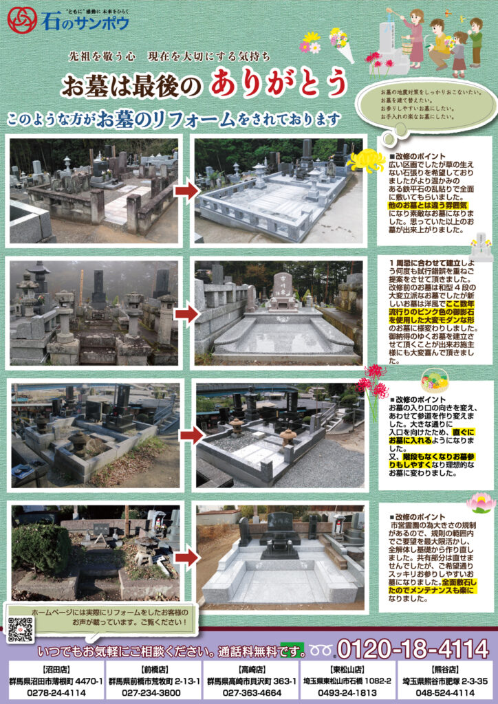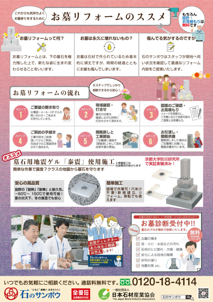 また、お墓の新規建立からリフォーム、ご相談まで、この機会にぜひご利用ください。